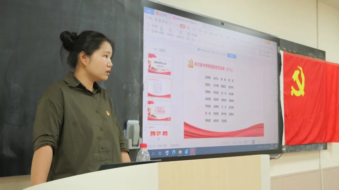 党员大会严格按照《中国共产党章程》和《中国共产党发展党员工作细则》规定进行。27名预备党员依次向大会宣读转正申请,汇报自己在预备期间的综合表现情况,并表明自己的态度和决心。入党介绍人李念、祝越等同志先后发言,分别介绍预备党员在考察期间的各方面表现情况,肯定成绩,指出不足和努力的方向,并表明自己的意见。支部书记李念同志代表支委会向大会介绍征求意见、支委会审查情况和预备党员在考察期间的学习、参加组织活动表现情况,并表明支委会的意见。有表决权的与会党员填写选票,大会采取无记名投票的方式表决通过邹金娜等27名同志按期转为中国共产党正式党员。