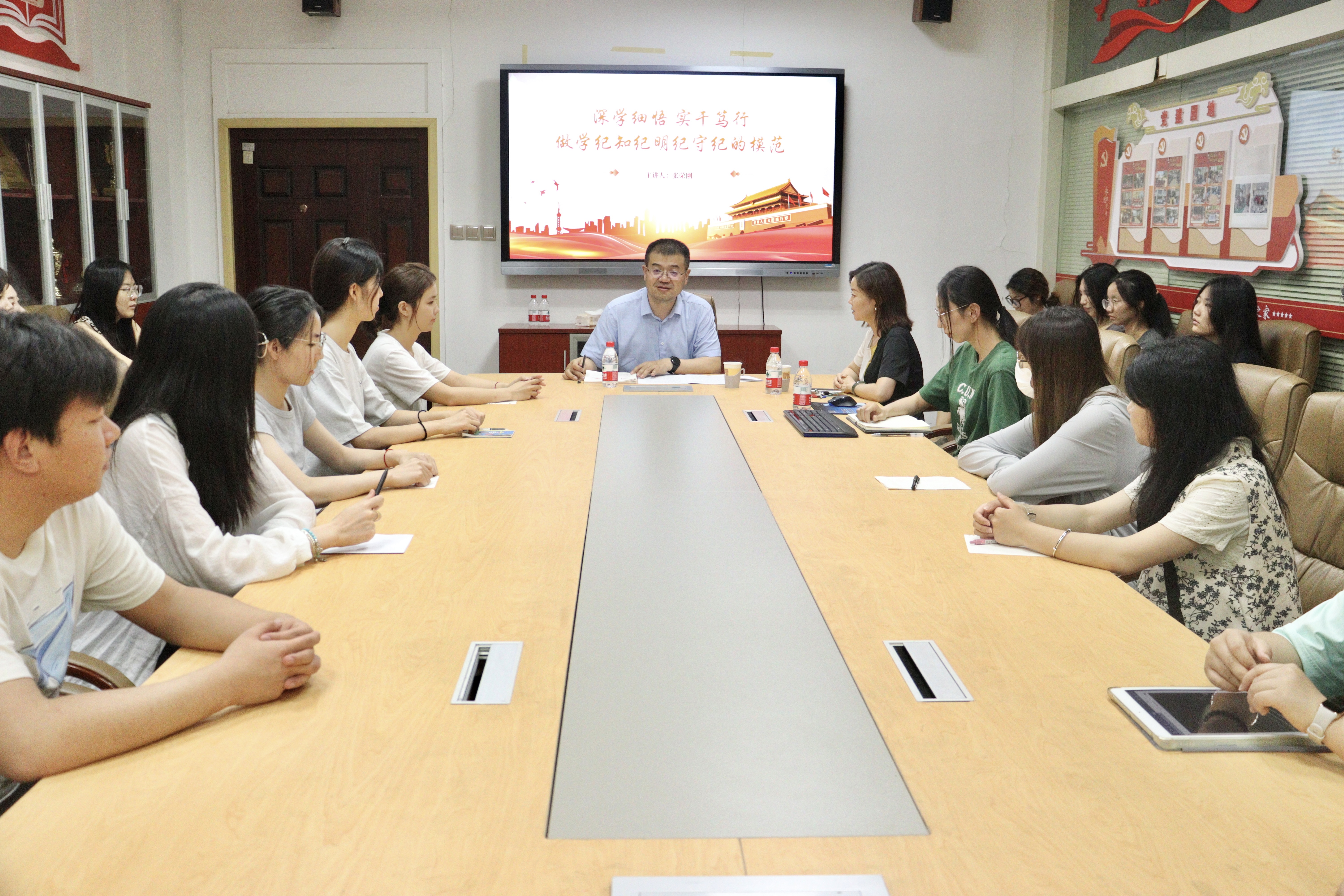 6月19日晚,副校长张荣刚在意甲直播 关天会议室为研究生党支部全体党员讲授党纪学习教育专题党课,学院党委副书记侯颖怡主持。学院组织员段蓓蕾、学生党支部书记王隽、研究生党支部全体党员30余人参加党课学习。
