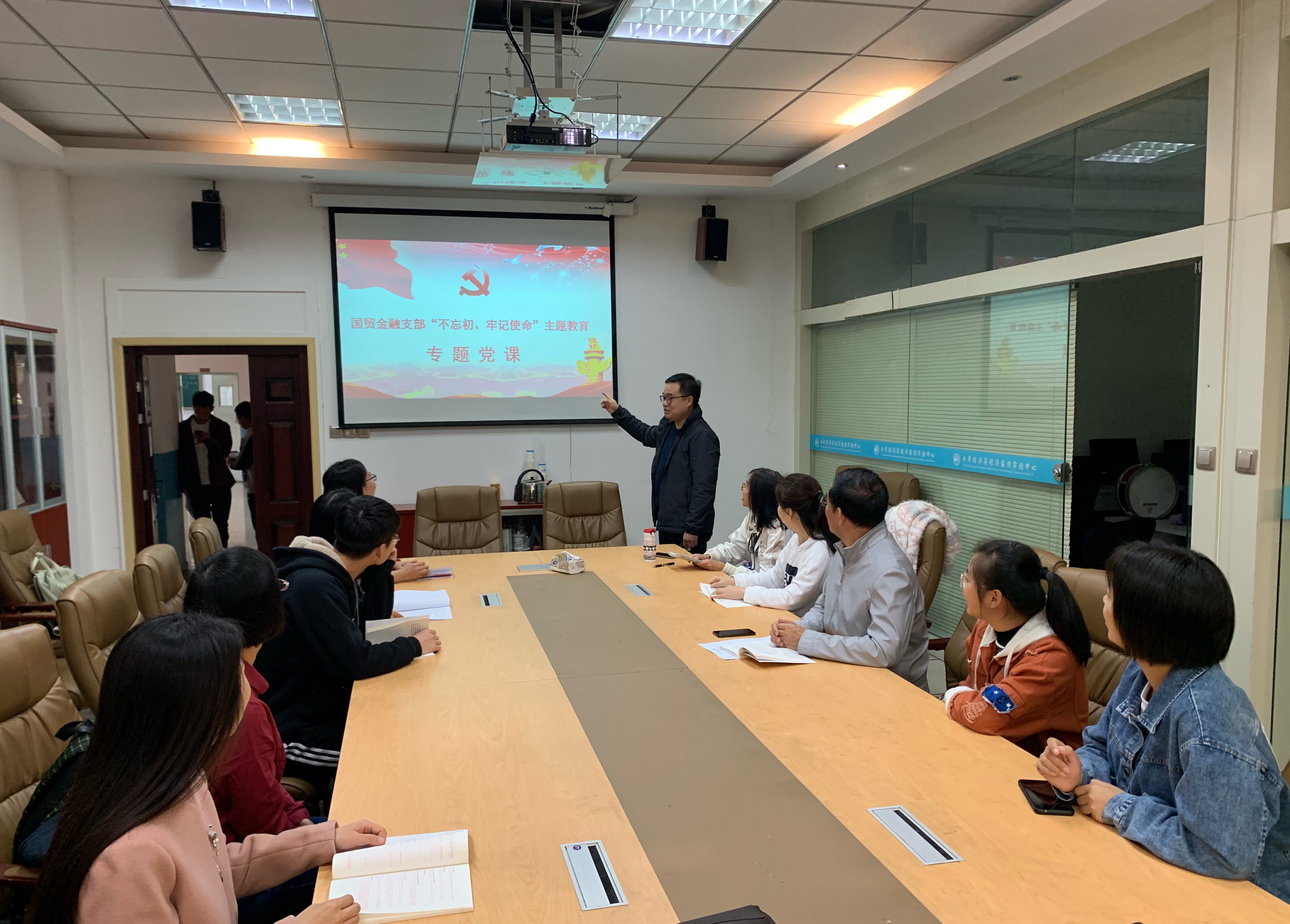10月25日上午,经济学院国贸金融党支部在关天研究院会议室开展集体学习,支部书记徐建卫以“支部建设与课程思政教学改革深度融合的探索与实践”为题讲专题党课,支部全体党员教师参加。专题党课对开展课程思政教学改革的背景和意义进行阐述,并集中探讨了三方面问题:一是大学金融学课程的育人功能,二是课程思政与思政课程的协同作用,三是推进课程思政教学改革的有效路径。