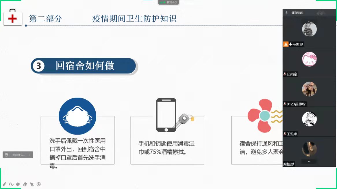他指出,近期我国疫情多发频发,疫情防控依然面临复杂严峻形势和挑战,受新冠疫情与日趋复杂的国际环境等多重因素影响,面临的风险挑战和各项工作任务势必更加艰巨。他要求,每一位师生都要提高站位,要以习近平新时代中国特色社会主义思想为指导,深刻认识“两个确立”的决定性意义,把思想和行动统一到党中央决策部署上来,弘扬伟大建党精神和伟大抗疫精神;要学习了解疫情防控政策,坚决落实常态化疫情防控措施,克服麻痹思想,面对意识形态和舆论传播中有关疫情的“噪音”“杂音”,要坚持正确的价值取向,理性分析、明辨是非,深化正面宣传引导,营造良好舆论环境,身体力行为疫情防控贡献积极力量。