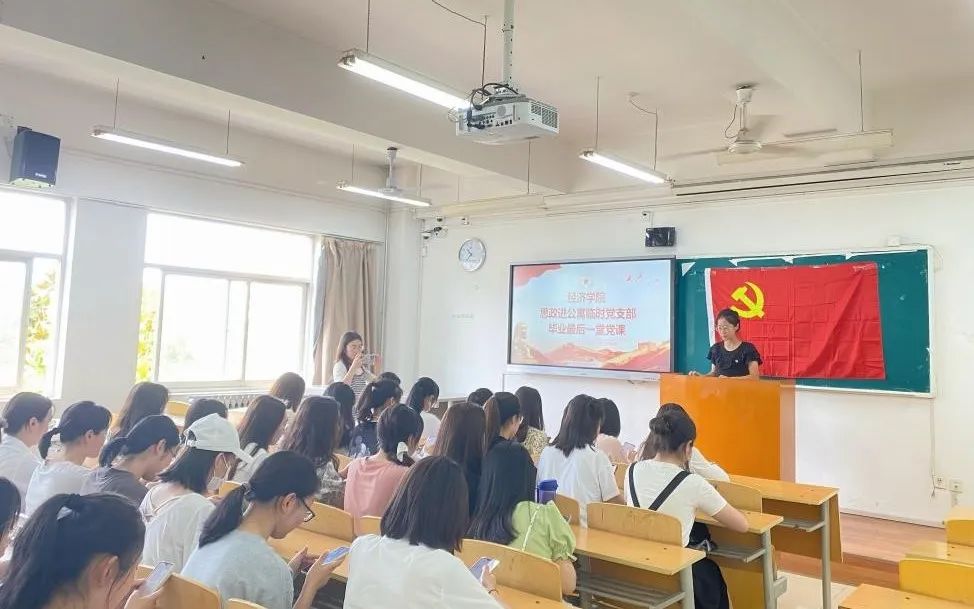 活动第一项,刘佳老师带领支部党员重温入党誓词,铮铮誓言再次坚定了大家的初心与使命。随后,刘佳老师以《青春向党,砥砺前行》为题讲了最后一堂党课,她希望同学们在未来的道路上,一是胸怀大局,树立战略思维,从全局的角度因时而谋、应势而动、顺势而为;二是可堪大任,将小我融入大我之中,紧跟时代发展步伐,勇挑重担,在社会服务;三是做个“大”人,在未来的学习和生活中,同他人互相依靠、互相扶持、互相帮助、共同合作、一起进步,“人”字最简单,一撇一捺,但足够用一生书写。最后,支部全体党员合唱《不说再见》,每一段旅途的终点,都是下一段旅程的起点,希望同学们能保持积极进取的心态,在拥抱未来的大道上,坚定不移地追光前行。