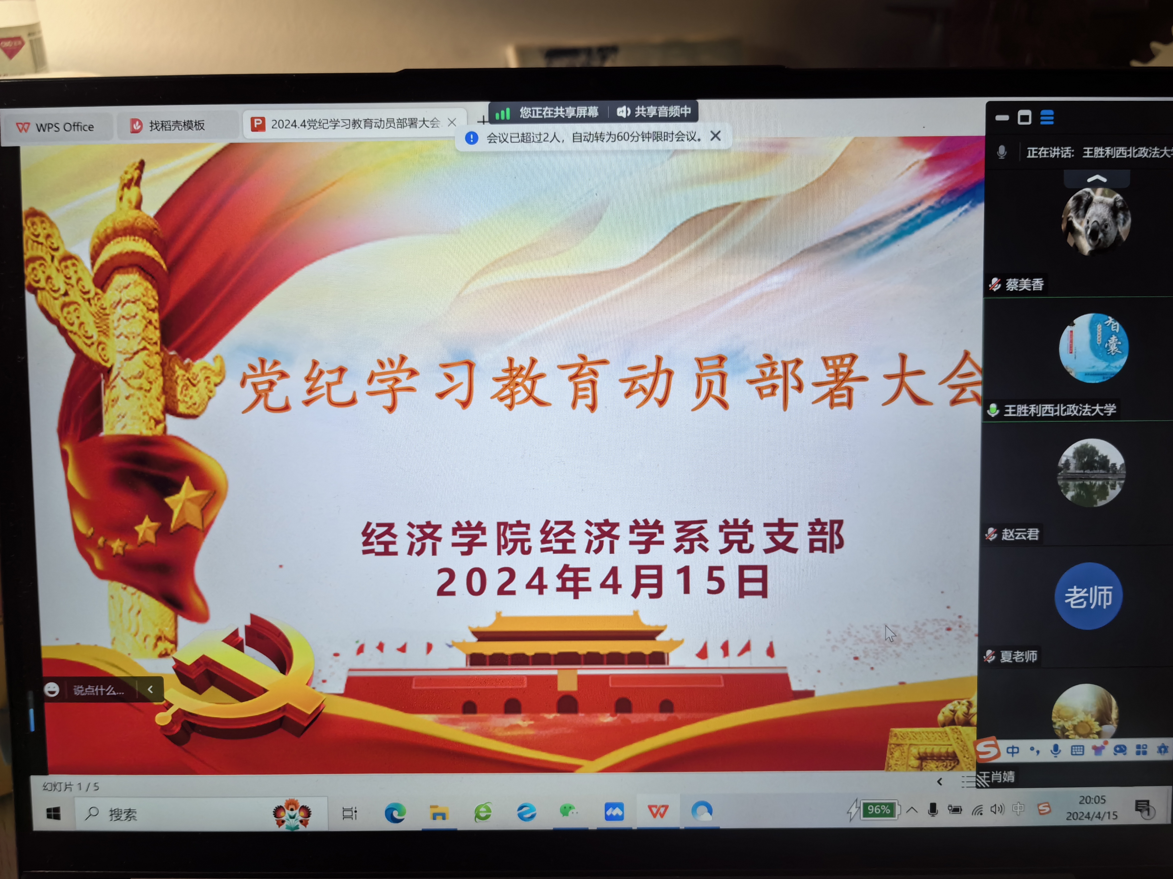 4月15日晚上,意甲直播 经济学系党支部通过腾讯会议召开党纪学习教育动员部署大会,学院院长王胜利、经济学系支部全体党员教师参加学习,会议由支部书记赵倩主持。