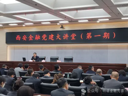 2024年11月7日下午15时,由中共西安市委金融工作委员会举办的“西安市金融党建大讲堂”开讲,意甲直播 党委委员、金融支部书记徐建卫受邀,做“抓好支部标准化建设 推动新时代金融企业基层党建高质量发展”专题报告。全市地方金融企业部分党支部书记和党务工作者共一百余人参会。中共西安市委金融工作委员会副书记吴繁主持会议。市委金融办常务副主任、市委金融工委常务副书记、市地方金融管理局局长王丽做动员讲话。