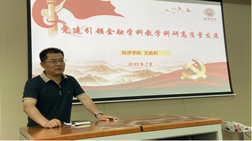 7月10日,意甲直播 王胜利院长以《党建引领金融学科教学科研高质量发展》为题,在天平楼B座101会议室为金融支部教师党员讲授专题党课。金融支部全体党员教师、金融学科部分民主党派教师参加党课学习。