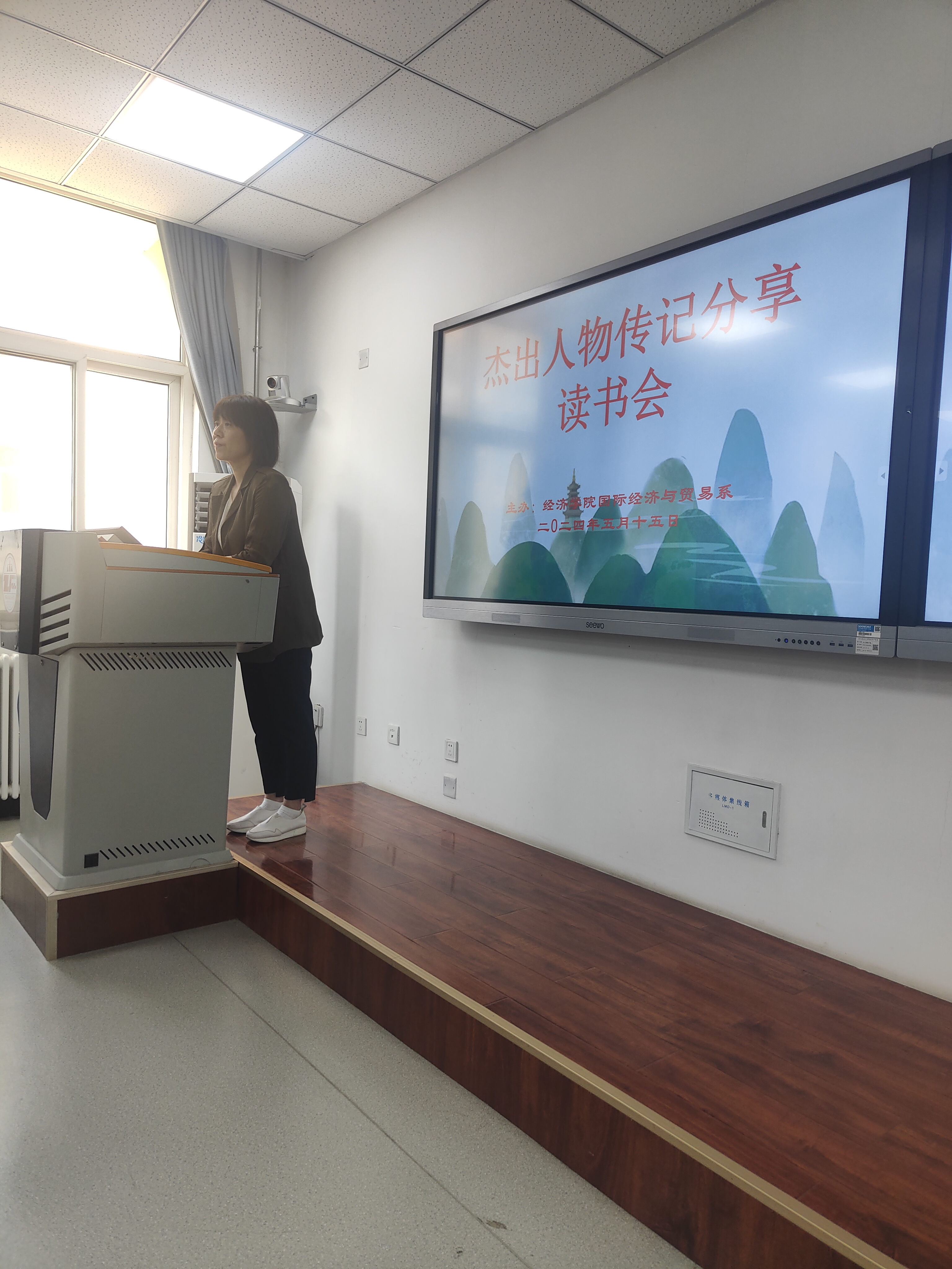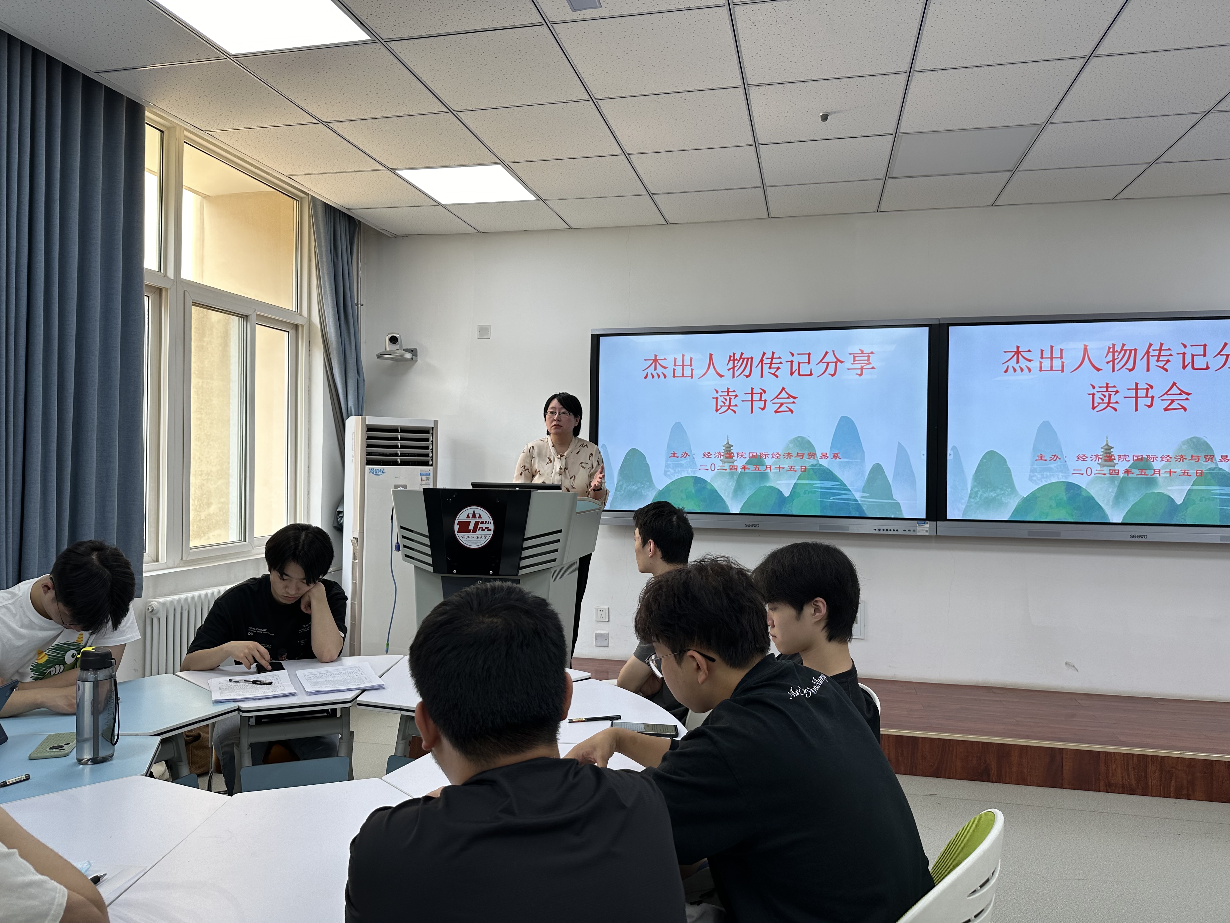 2024年5月15日下午,意甲直播 在长安校区诚意楼301教室举办本科生杰出人物传记分享读书会,国贸系主任王雯婧老师和崔莉老师,以及50余位2021级与2023级本科学生参加此次活动。读书会的筹备和举办得到意甲直播 领导和国贸系各位老师的支持和指导。