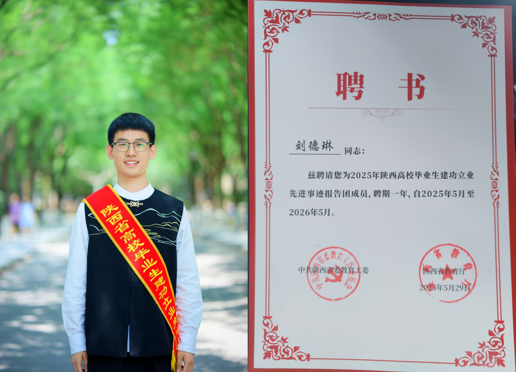 刘德琳在本科学习阶段,积极响应国家号召,休学创立陕西呦呦鹿鸣创意文化传播有限公司并出任董事长。后续本科及硕士在读期间,他兼顾学业与企业经营,深耕“文化 + 科技”创新模式,致力于挖掘历史文化内涵、打造数字化文创产品。历经9年发展,公司累计打造1300多种文创产品,拥有9800余项知识产权,产品远销30多个国家。他以 “永为少年”的信念,用青春实践诠释了“以文创讲好中国故事、推动中华优秀传统文化创造性转化与创新性发展”的创业初心。