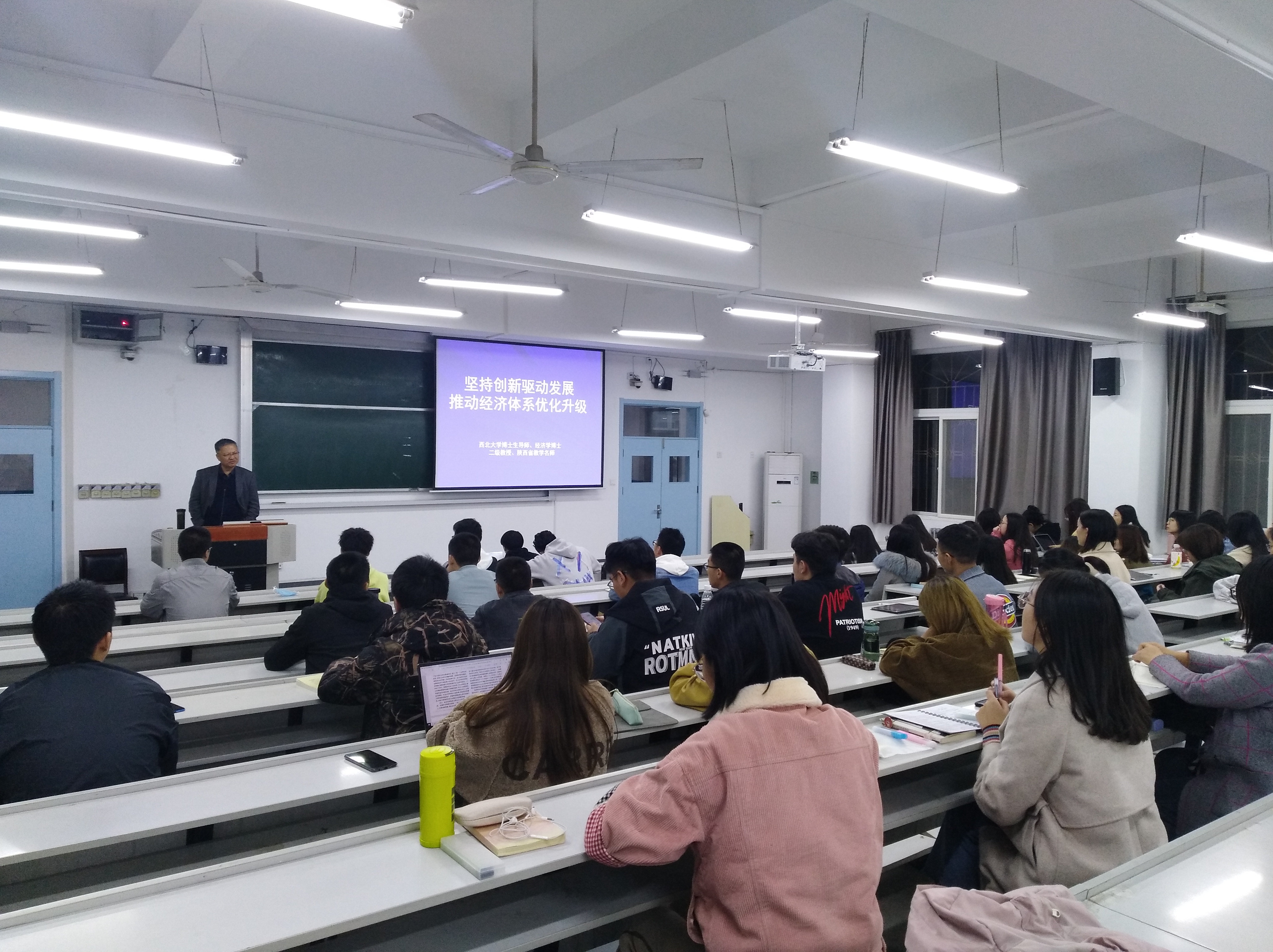11月9日晚,西北大学博士生导师惠宁教授应邀来意甲女足直播 作了题为“坚持创新驱动发展,推动经济体系优化升级”的学术讲座,学院全体研究生参加报告会,报告由学院副院长王胜利教授主持。