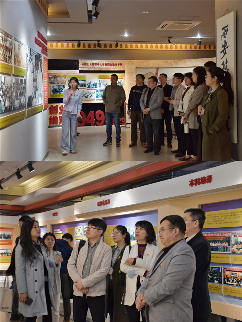 随后,大家在讲解员带领下前往校史馆,一起重温西法大的光辉办学历程。泛黄的照片和实物展品定格住转瞬即逝的珍贵画面,见证了学校从陕北公学一路走来发展壮大,始终传承红色基因、坚守为党育人初心使命的历史缩影。先辈们探寻革命道路时筚路蓝缕、艰苦奋斗的情景,一幕幕生动再现,八十余年办学历史中,虽然校址几经变迁,红色精神脉络却一以贯之、清晰可见。驻足观赏,师生党员们为先辈崇高品质和奋斗精神所感染,大家认为开展党史学习教育,要用好学校红色文化资源这一生动教材,培养爱党爱国、爱校荣校的情怀,从历史中汲取奋进力量。