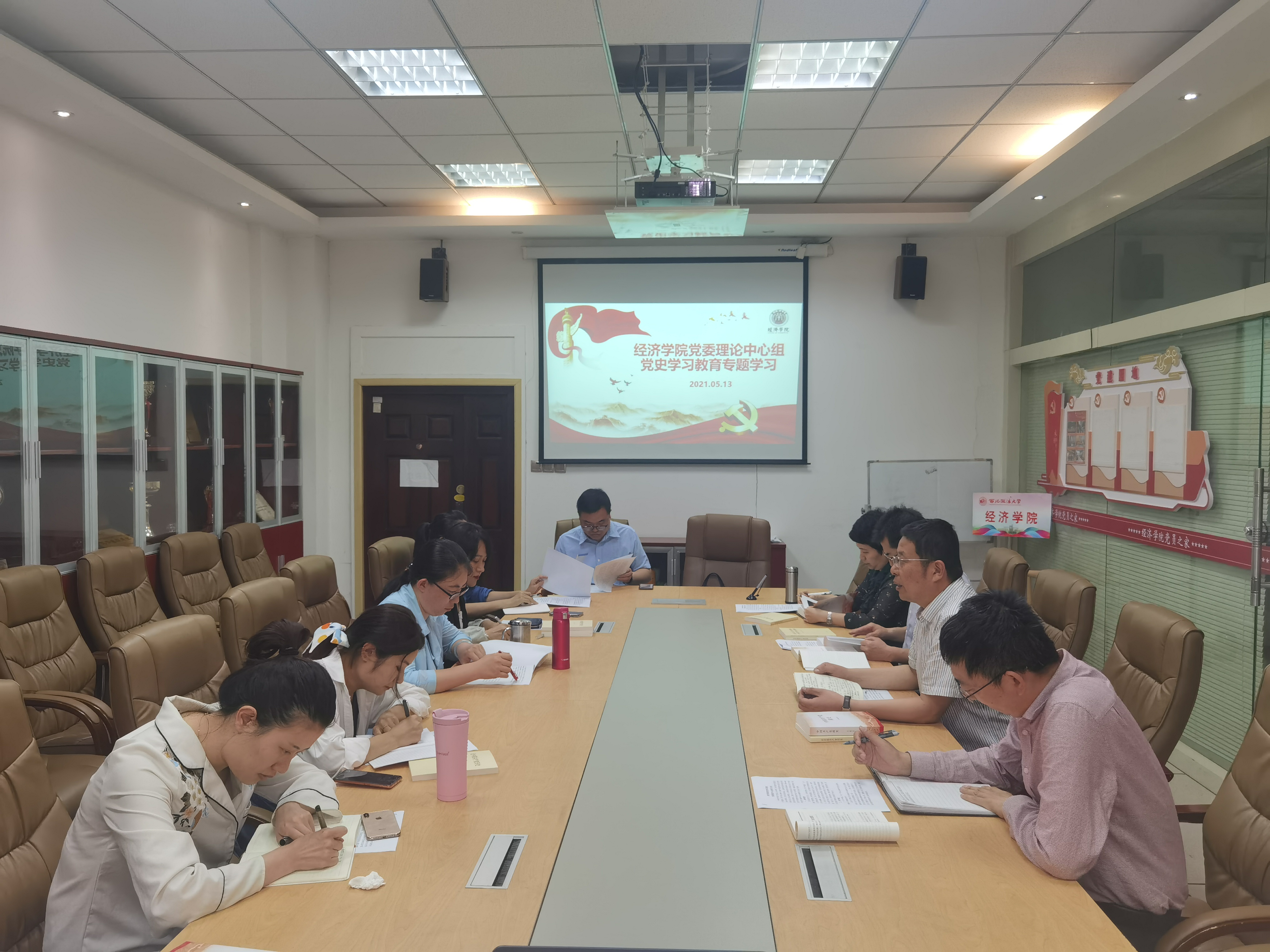 5月13日下午,意甲直播 党委理论学习中心组(扩大)学习会议在关天会议室召开,围绕新民主主义革命时期历史开展专题学习。全体领导班子成员、各党支部书记参加会议,党委书记王森主持会议。