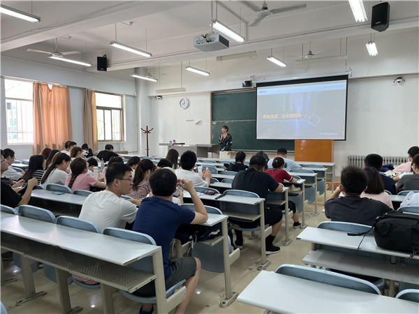 首先,王老师向同学们展示了今年毕业生就业数据,为大家详细分析了当前严峻的就业形势并介绍了经济类毕业生的就业前景,帮助同学们合理判定未来职业生涯发展方向;随后,她通过案例分析,强调了简历制作的重要性,并讲授了职场面试技巧和简历制作基本技能。