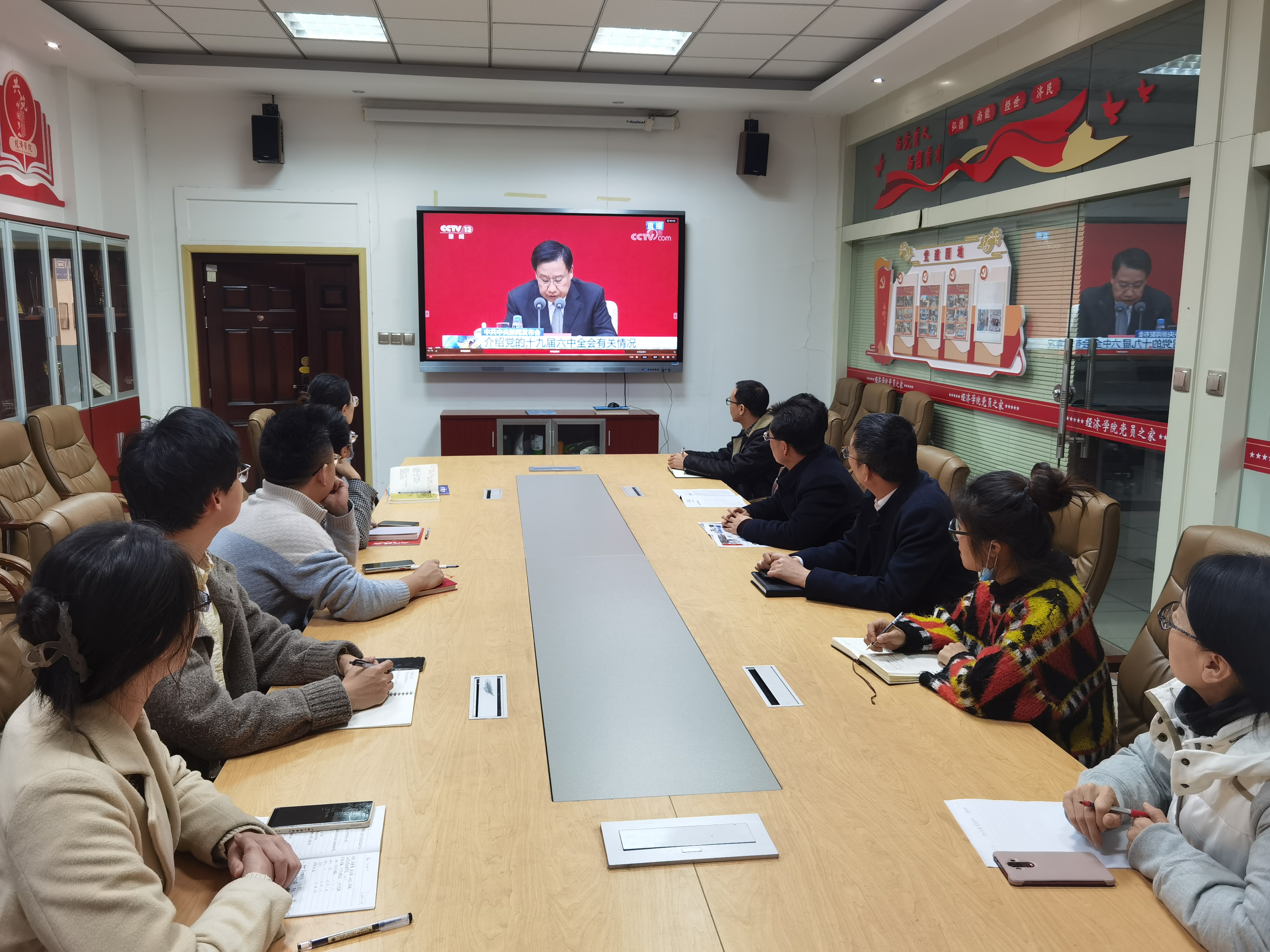 11月12日上午10时,中共中央举行新闻发布会,介绍党的十九届六中全会精神。意甲直播 组织干部师生在关天会议室集中收看新闻发布会直播,第一时间学习领会党的十九届六中全会精神,学院领导班子成员、组织员、教师党员代表、民主党派及群众代表参加集体学习。