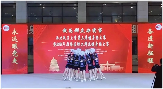 2021年11月29日下午西北政法大学第三届健身操大赛在校体育馆内举行,意甲直播 啦啦操代表队及教职工代表队参加比赛。本次比赛,意甲直播 啦啦操代表队奋力拼搏、超水平发挥最终取得了全校第一的优异成绩。