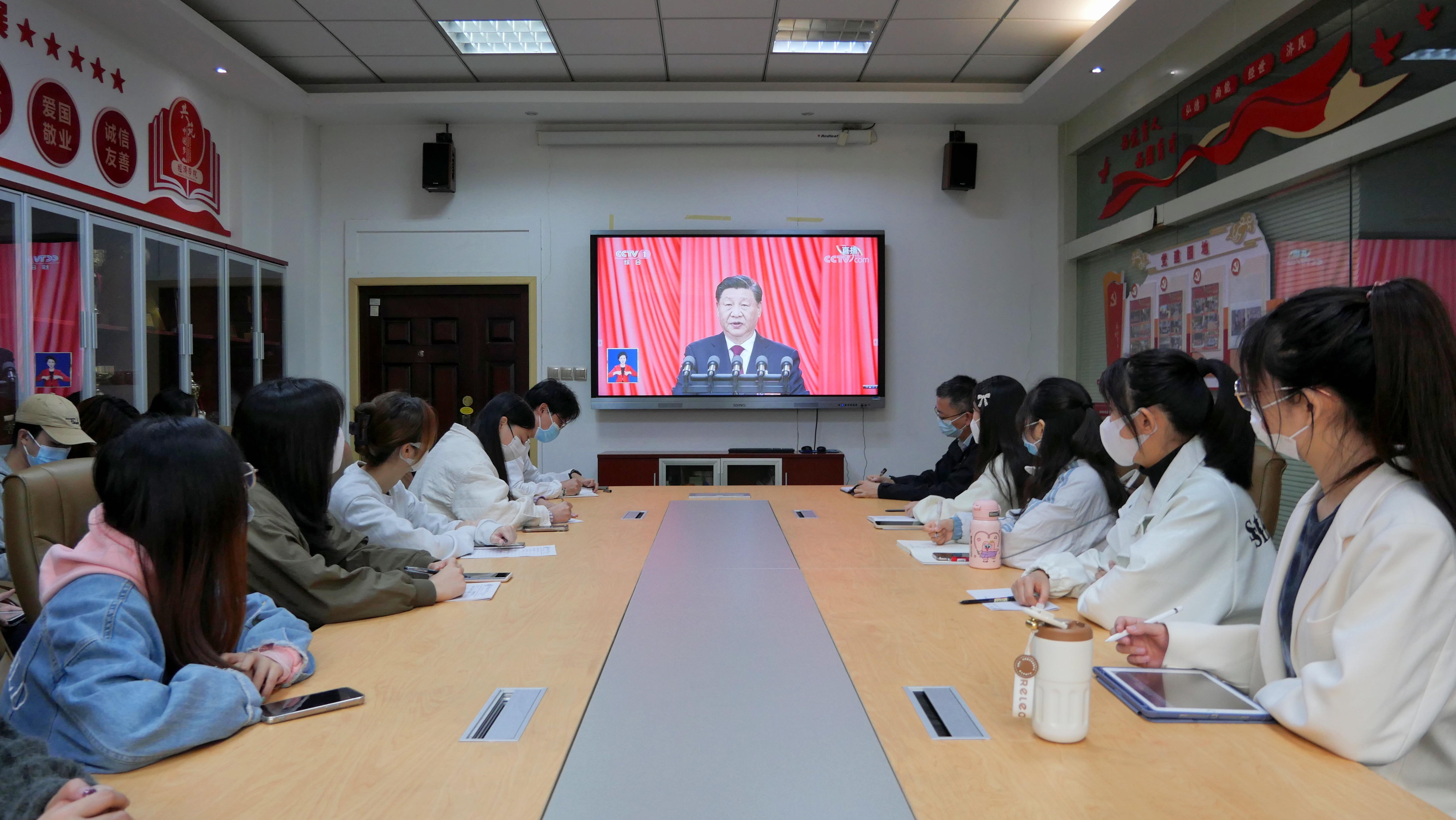 10月16日,中国共产党第二十次全国代表大会在北京人民大会堂隆重开幕。意甲直播 组织师生以线上线下相结合的方式收看中国共产党第二十次全国代表大会开幕会直播。学院领导班子成员、师生党员代表20人在长安校区关天会议室集中收看,其余师生党员200余人通过新闻网站、客户端、电视频道、新媒体平台等多种形式,线上收看大会直播实况,学习习近平总书记在开幕会上的重要讲话精神并展开讨论。