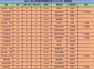 一是落实听课制度,加强课堂规范化管理。院领导、辅导员坚持每周深入课堂一线,参与课堂听课,了解学生课堂表现,及时与授课老师商讨解决学生学习中存在问题的办法。二是建立学风监测制度。实施“宿舍长--学习委员--学生会--辅导员”四级联动机制,发挥学生自我管理、自我教育、自我服务、自我监督作用。三是严格课堂考勤制度。充分发挥学生自治功能,学生会每周查课并形成查课周报。