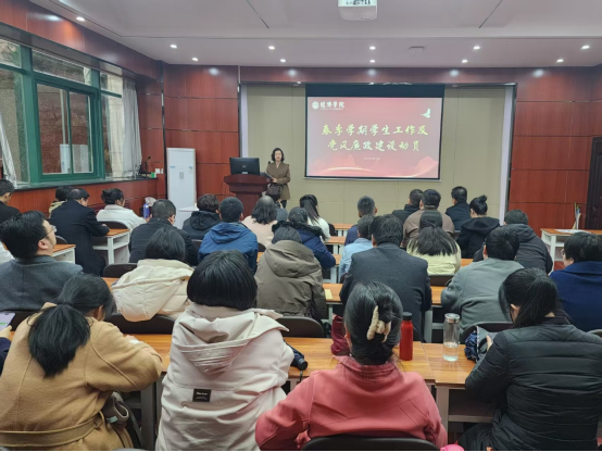 学院党委副书记侯颖怡就学生工作进行安排并开展党风廉政建设动员。在学生工作方面,强调要完善制度建设,营造优良学风环境;创新服务育人模式,提升学生工作实效;深化本科生导师制,构建“三全育人”新格局。