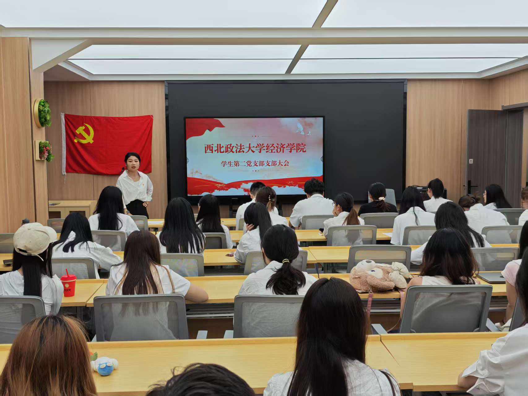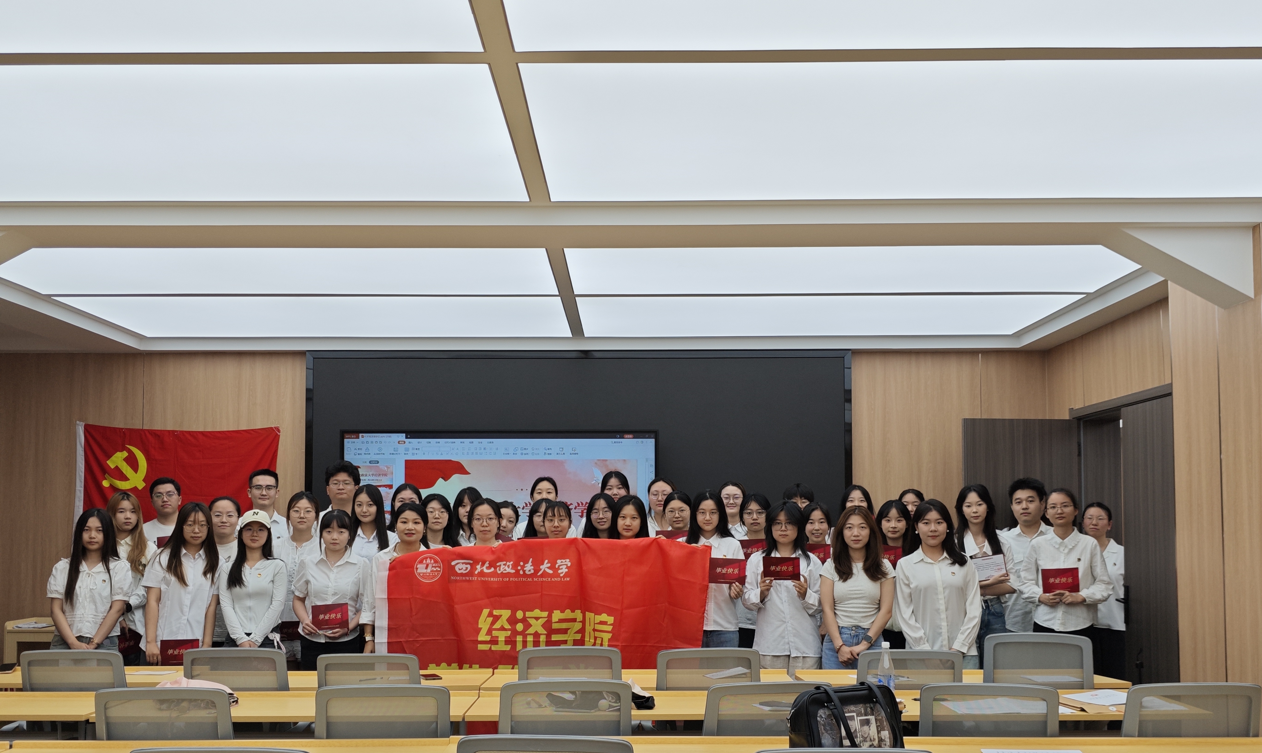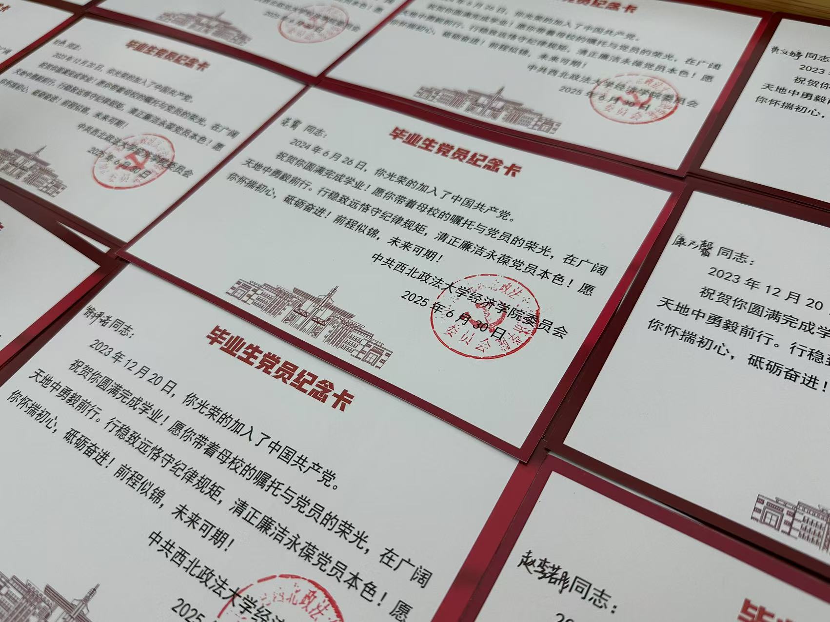王隽带领全体毕业生党员重温入党誓词,并为每一位毕业生党员颁发了精心设计的“毕业生党员纪念卡”。这张小小的卡片,承载着支部对大家圆满完成学业的衷心祝贺,更寄托着对大家未来坚守初心、砥砺前行的深切期望。全体党员以党旗为背景合影留念,定格下这充满意义的美好瞬间,为校园党员生活画上圆满句号,也开启了人生奋斗的新篇章。