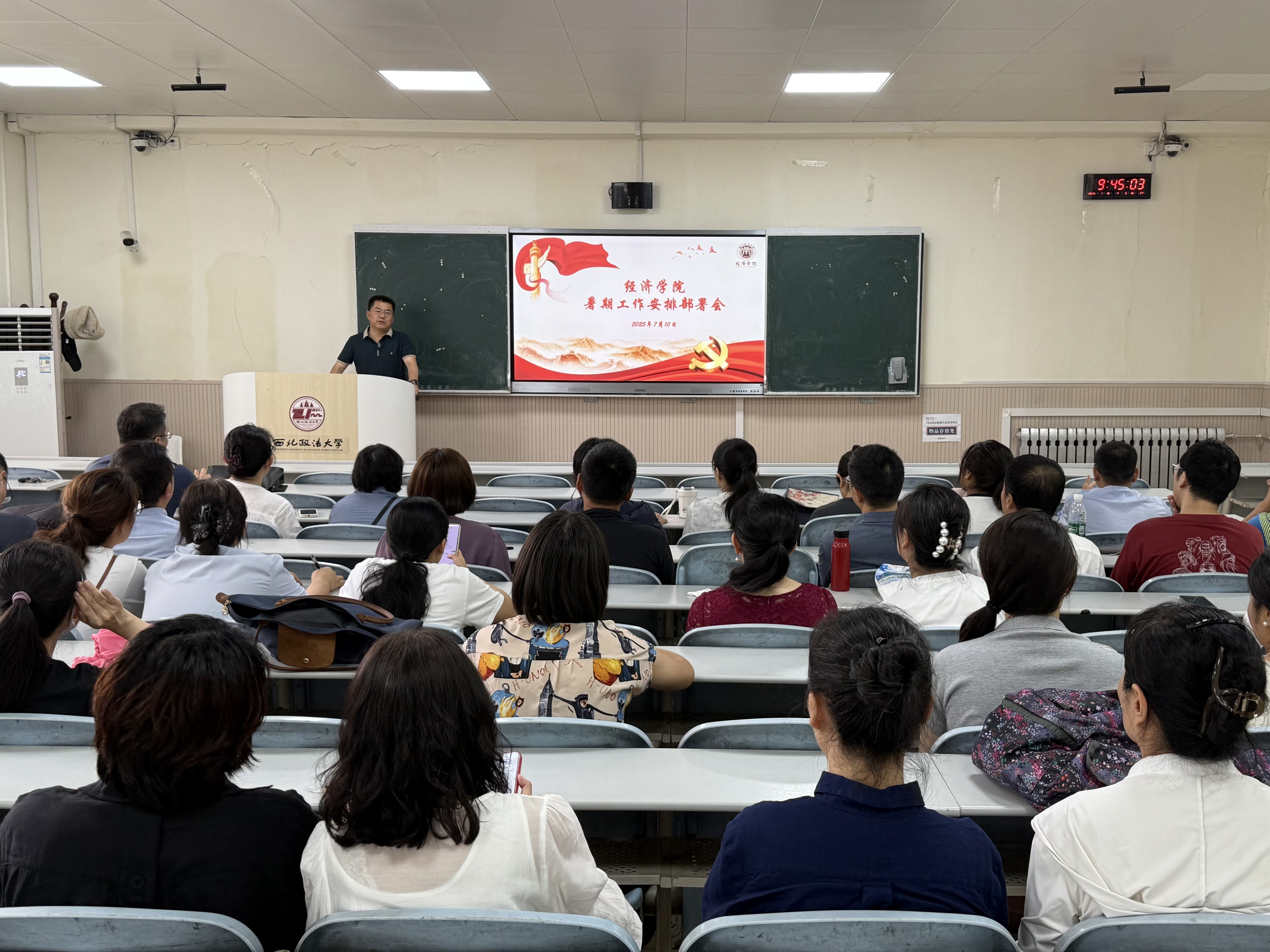 7月10日上午,意甲直播 在长安校区天平楼A座107教室召开暑期工作安排部署会。学院班子成员出席会议,全体教职工参会,会议由院长王胜利主持。