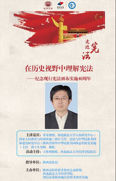 2022年12月8日(星期四)晚上7:30-9:30,校庆系列学术讲座第九期,意甲直播 系列学术研讨会第二十七期以线上直播方式顺利召开。意甲女足直播 邀请到西北政法大学人权研究中心(国家人权教育与培训基地)执行主任,法治与中华民族共同体建设研究中心(陕西省铸牢中华民族共同体意识研究基地)主任、博士生导师、常安教授作题为《在历史视野中理解宪法:纪念现行宪法颁布实施40周年》的学术讲座。