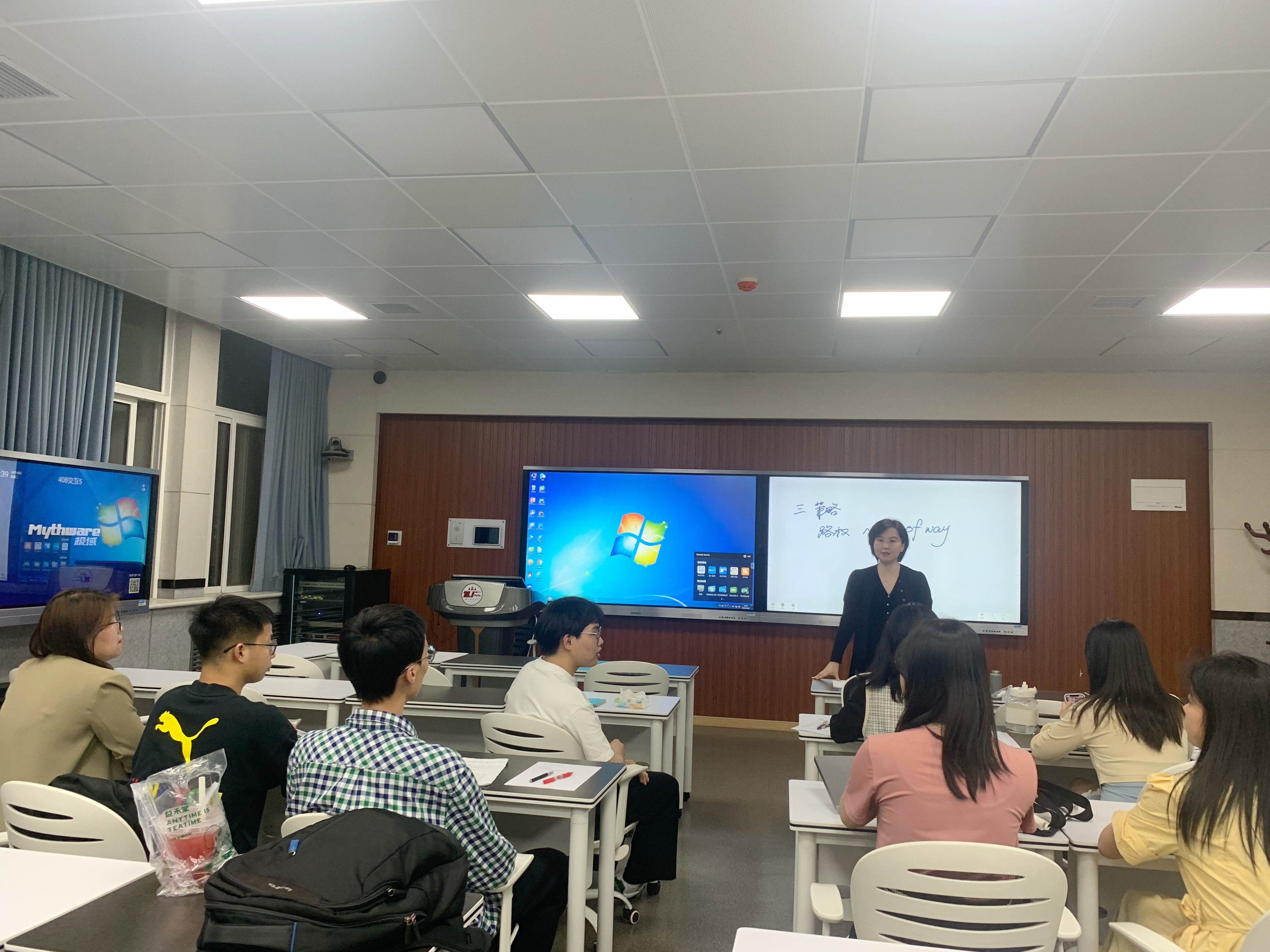 她引导并鼓励同学们思考并讨论在具体谈判案例中的角色分工和团队协作、谈判框架、内容和策略,为更高效地解决索赔争端、达成共赢的谈判目标而努力。同学们积极参加讨论,提出不少值得持续思考与探讨的建议及思路。