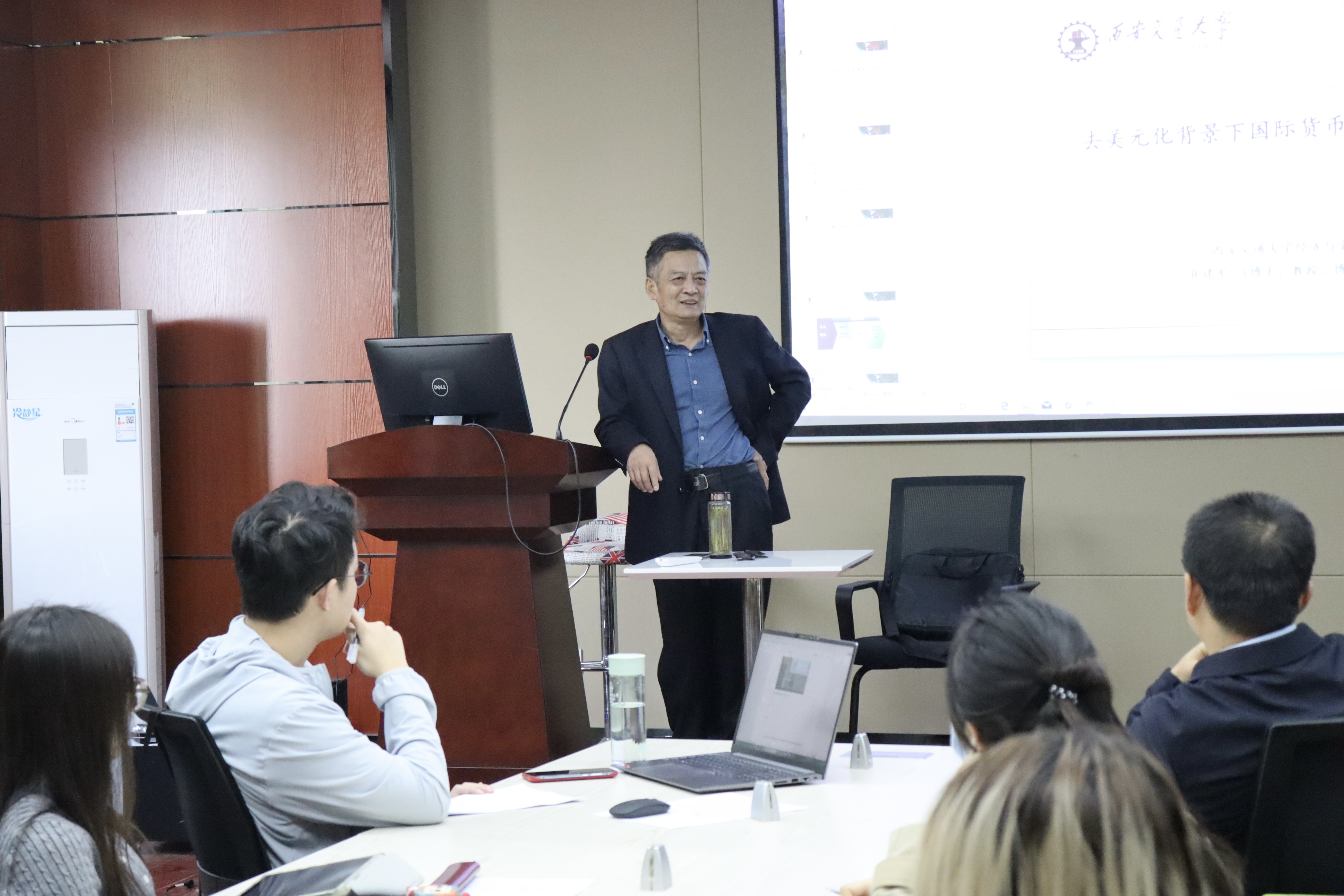 10月27日下午意甲女足直播 邀请了西安交通大学经济与金融学院教授、博士生导师崔建军教授在天平楼B100教室作题为《去美元背景下国际货币体系的未来》的讲座。本次讲座由学院院长王胜利教授主持,意甲直播 师生30余人参加了讲座。
