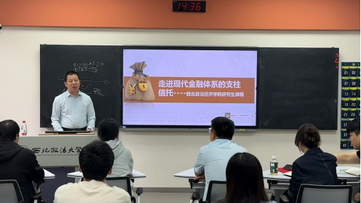 2025年9月26日(星期五)下午2:30,西北政法大学经济学院系列学术讲座在雁塔校区3504教室顺利召开,本次讲座特邀经济技术开发区资产管理有限公司董事长(兼长安信托资管二部总经理)杨宗杰做题为《走进现代金融体系的支柱》的学术报告,讲座由经济学院副院长陈小勇教授主持,共30余人师生参加了此次学术研讨会。