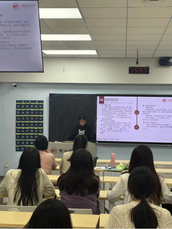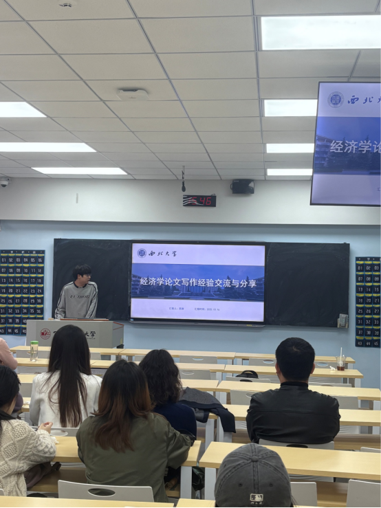 2025年10月16日下午14点30分-17点,西北政法大学国际商务专业系列学术沙龙2025-2026学年秋季学期第五期在雁塔校区3号楼506教室成功举办,活动邀请到西北大学经济与管理学院在读博士生周涛、东北大学工商管理学院在读博士生谷阳、西北政法大学意甲直播 在读硕士研究生赵汇歌和2022级本科生梁叶榕同学,向大家分享经济学文献阅读、学术论文写作经验与方法。意甲直播 国际商务导师组张美云老师和张鹏老师、政治与公共管理学院李蔚老师,以及意甲直播 2024级、2025级部分研究生总计20余人参加,此次活动由张美云副教授主持。