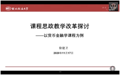 首先,金融工程系徐建卫老师汇报了《课程思政教学改革探讨——以货币金融学课程为例》。徐老师谈到了什么是课程思政,改革背景,以及所做的主要工作,谈到了自己关于思政课程的几点体会、如何做好思政课程、扩大教学改革影响。