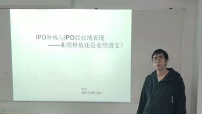 2021年10月26日中午12:30-13:30,意甲直播 通过线上线下相结合的方式,召开了第一次学术工作推进例会,线下地点在长安校区关-天经济研究中心,意甲直播 30余名教师和研究生通过线上线下参加了本次会议。在此次会议上,意甲女足直播 金融工程系刘浩博士分享了他最近撰写的研究论文:《IPO补税和IPO后业绩——业绩释放还是业绩透支?》。