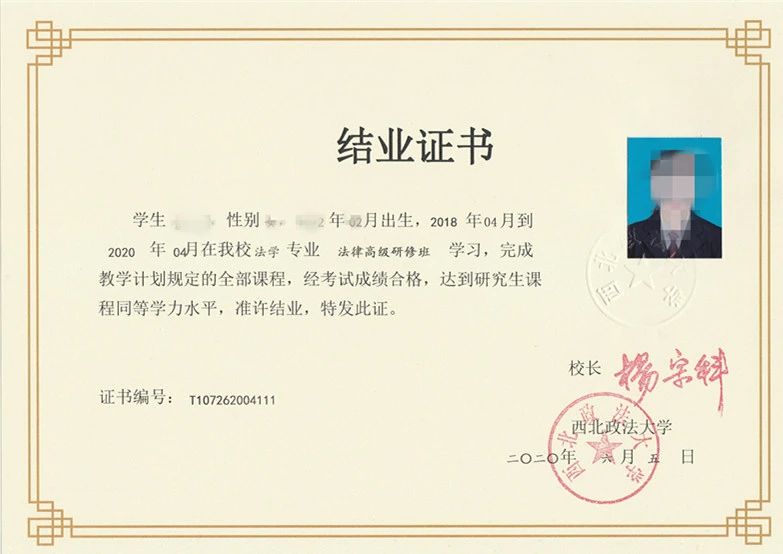 2.取得西北政法大学高级研修班结业证书;