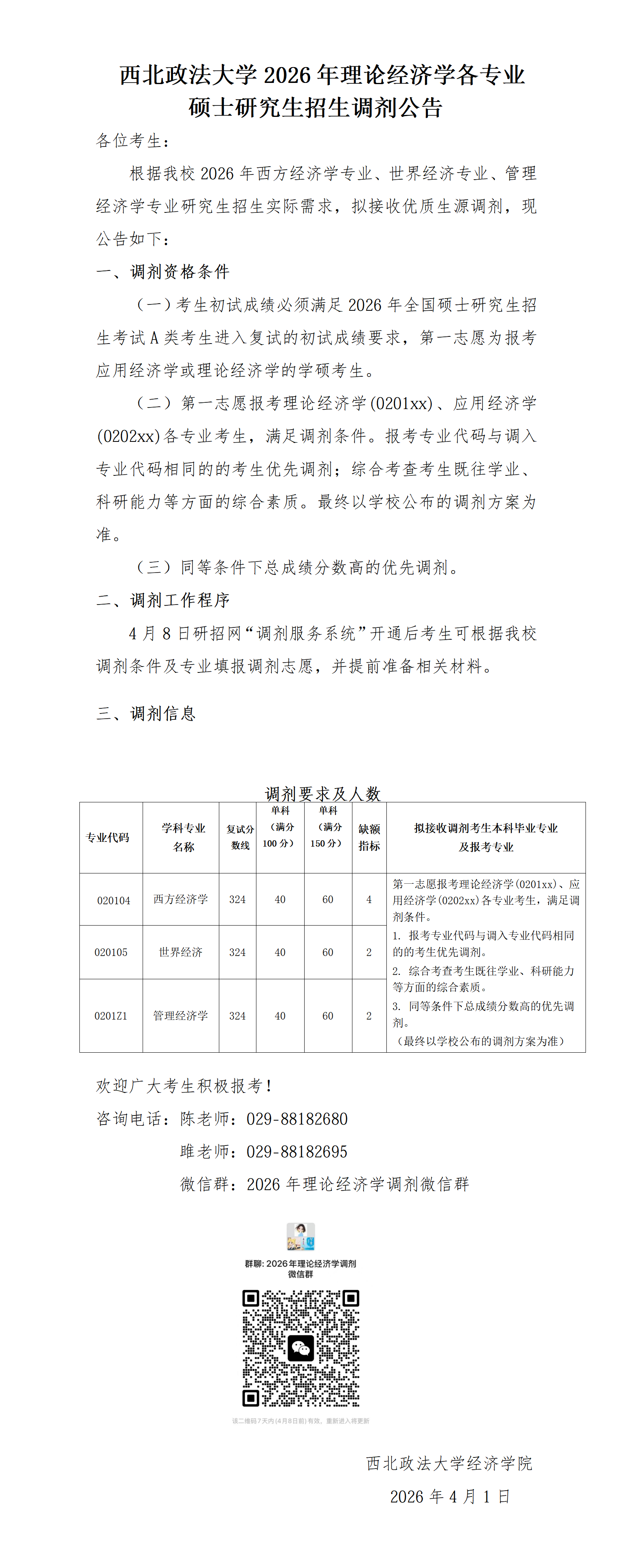 下一篇:西北政法大学2026年理论经济学学硕、 金融专硕和国际商务专硕研究生 拟录取名单公示